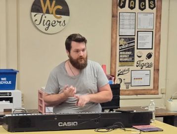 Josh went and was a guest for "Color Your World with Music" day and did a short group class and talked about upcoming after school programs. The kids were really excited and had a great time!